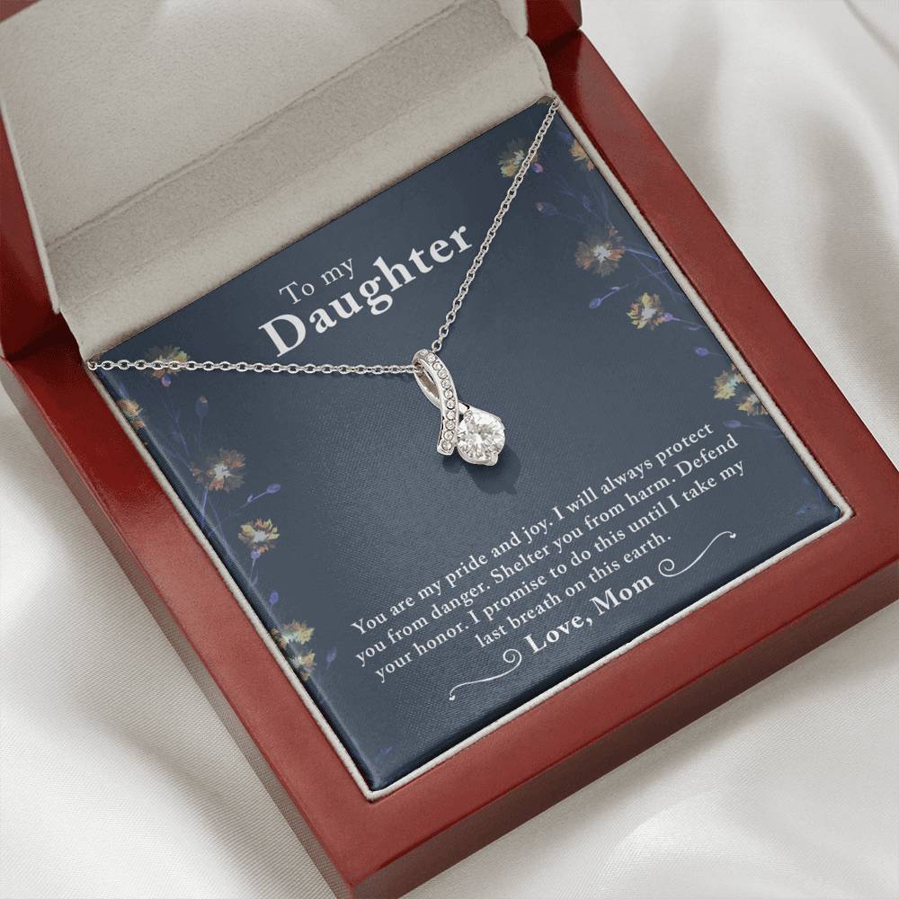 Imagine her reaction when she opens this stunning gift! The Alluring Beauty necklace features a petite ribbon shaped pendant that is sure to dazzle your special someone. Whether it's a birthday or anniversary, make sure to get her a gift she will love for years to come.
