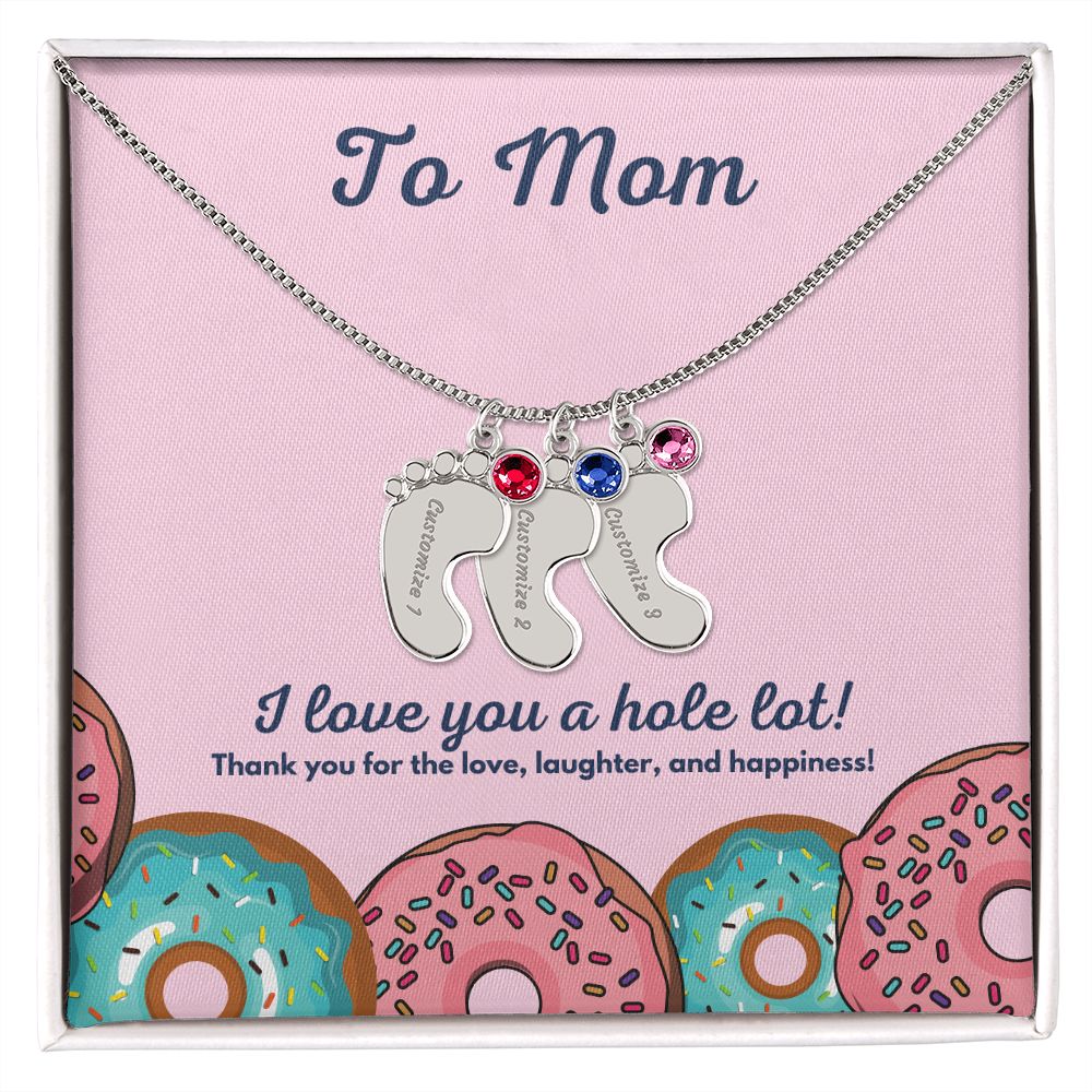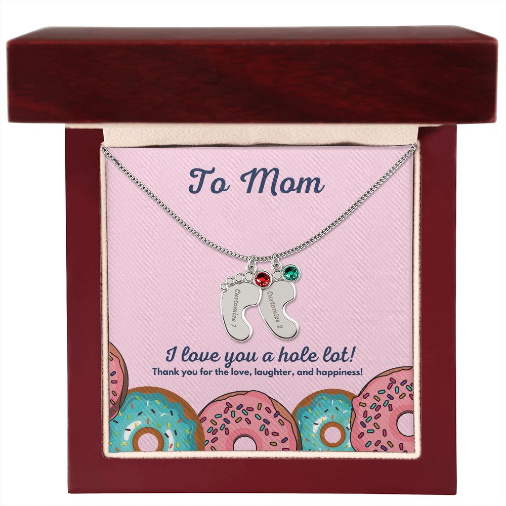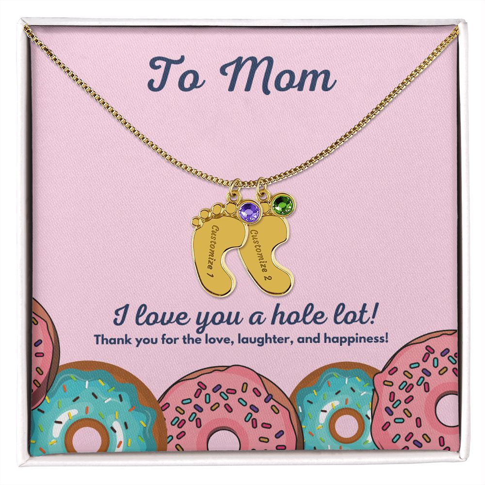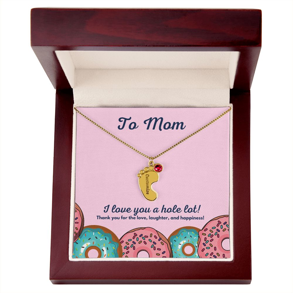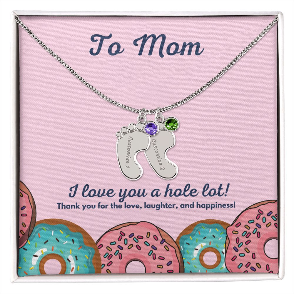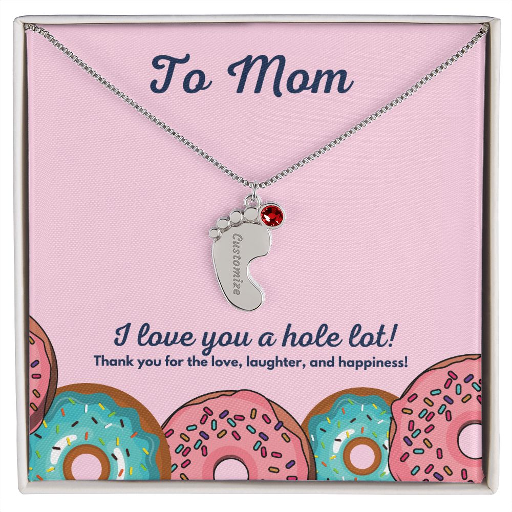 Celebrate the arrival of a newborn or cherish a precious memory with our Custom Baby Feet Necklace with Birthstone. Personalize your gift by engraving a name of your choice onto the pendant and choosing a crystal that correlates with the baby's birth month. And by picking multiple pendants, a custom present like this is perfect for moms and grandmothers with big families. This is a one-of-a-kind keepsake that will be treasured for a lifetime!